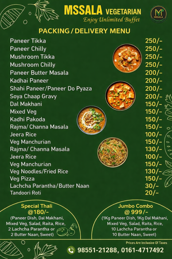 Explore our unlimited vegetarian buffet menu featuring rich masala flavours, fresh ingredients, and daily favourites.